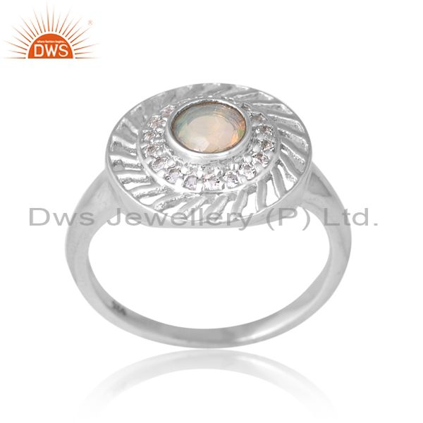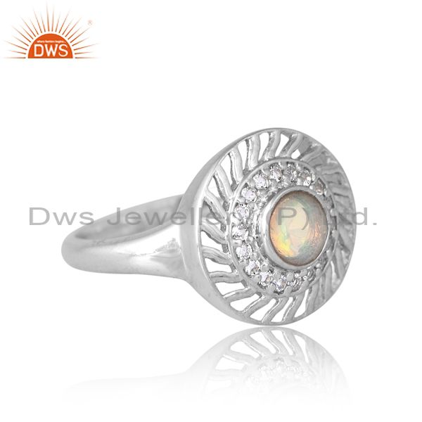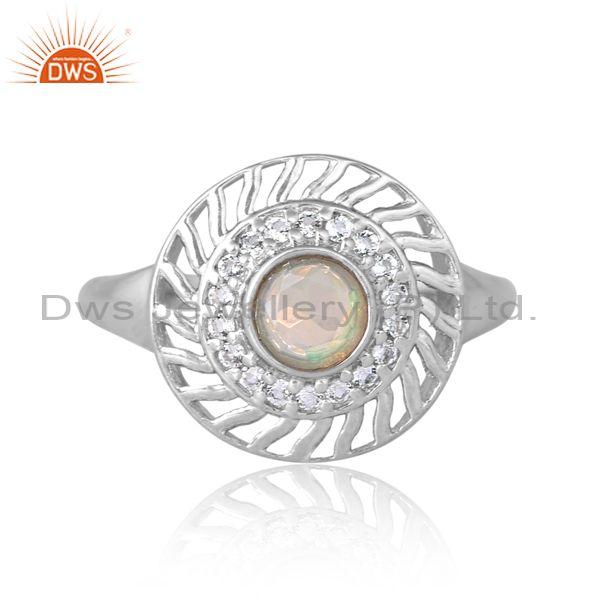 Silver White Circular Ring With Ethiopian Opal And Topaz