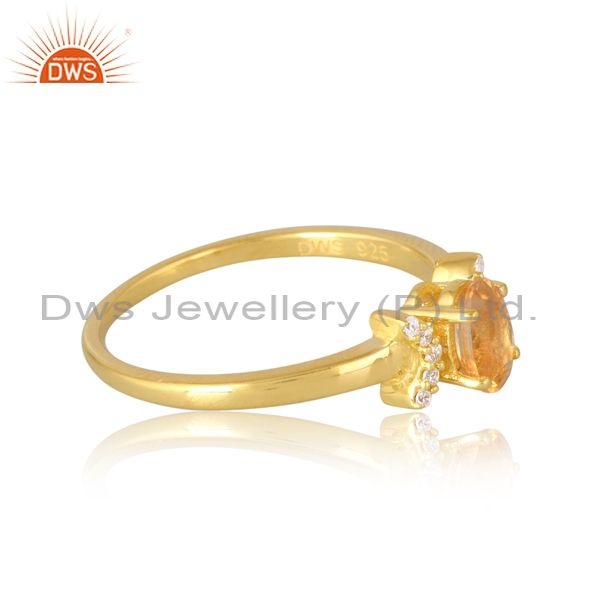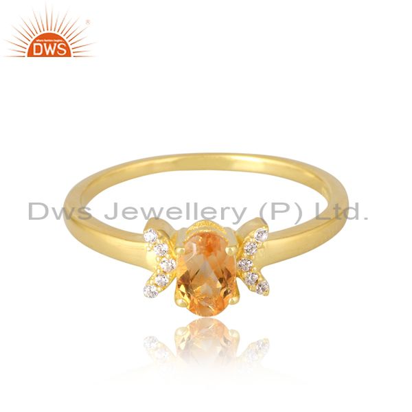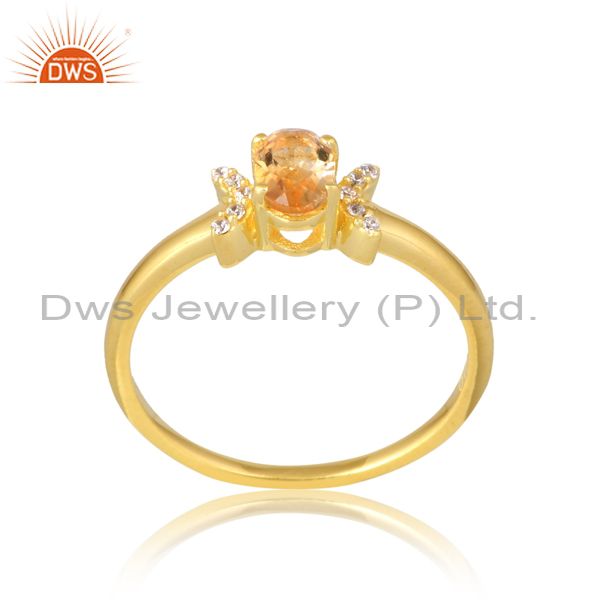 Silver White Gold Plated Citrine And Cubic Zirconia Ring