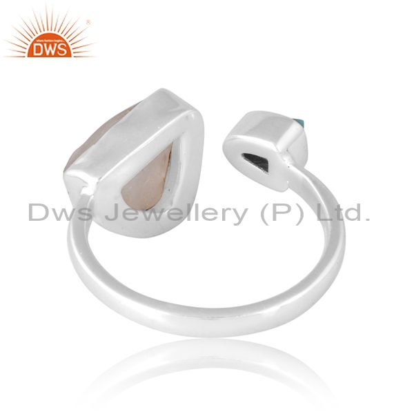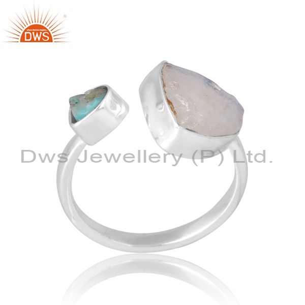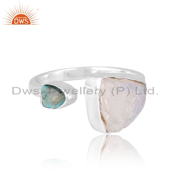 Silver White Rainbow Moonstone, Arizona Turquoise Rough Ring