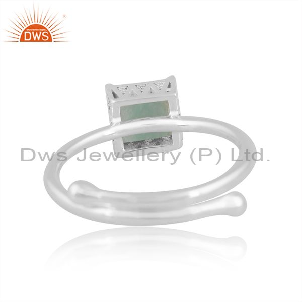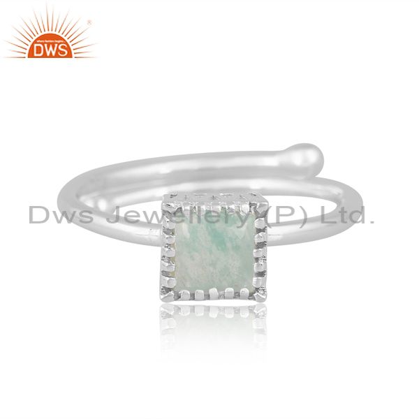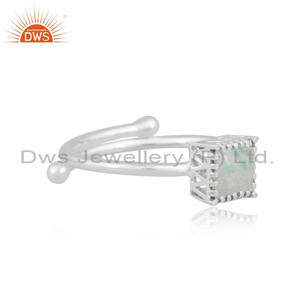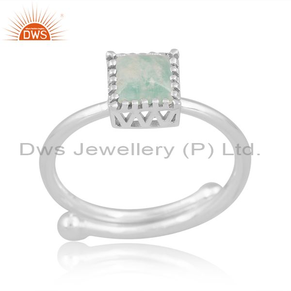 Silver White Ring With Amazonite Cabushion Square Cut Stone
