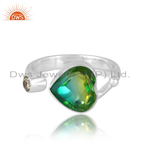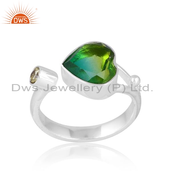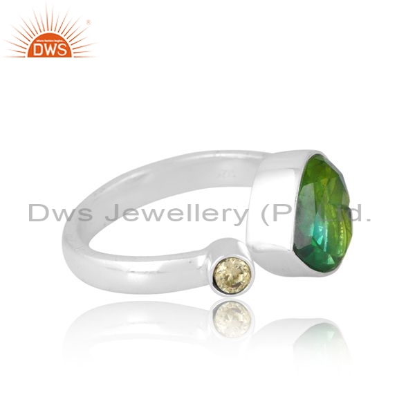 Silver White Ring With Bio Chrome And Zircon Peridot Cut