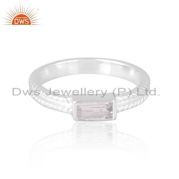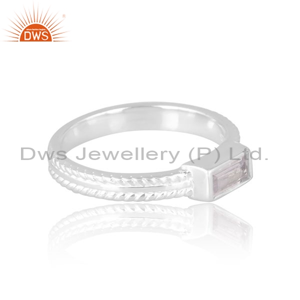 Silver White Ring With Cubic Zirconia And Twist Wire