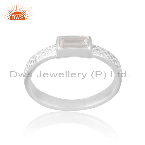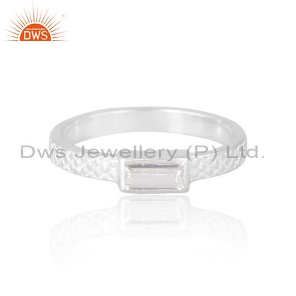 Silver White Ring With Cubic Zirconia Beguette Cut