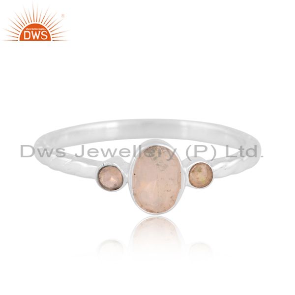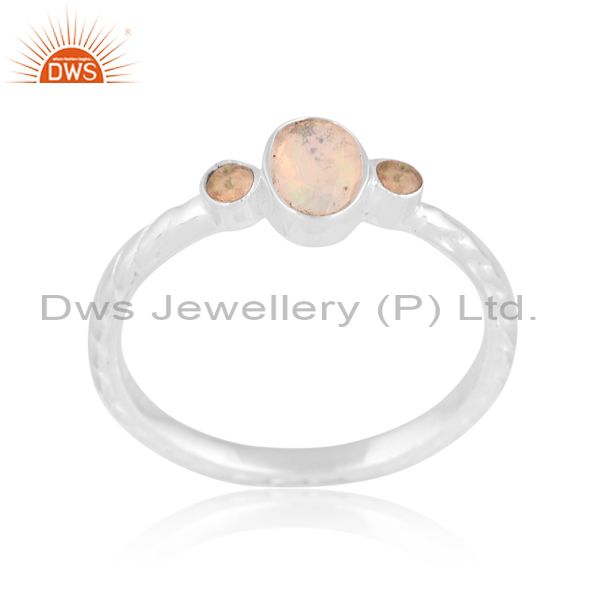 Silver White Ring With Ethiopian Opal Oval And Round Cut