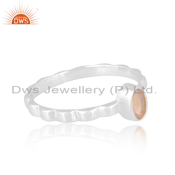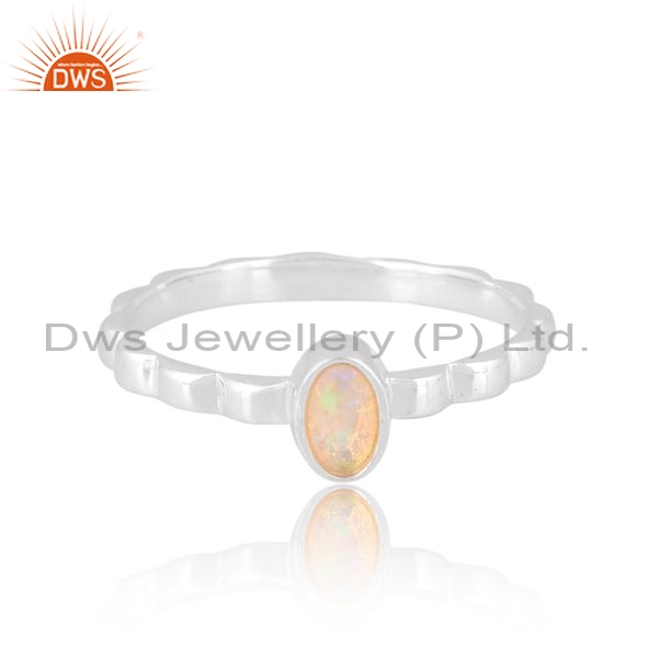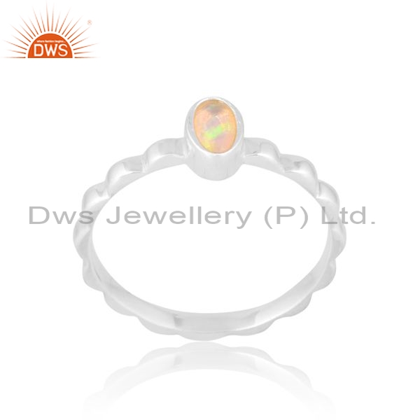 Silver White Ring With Ethiopian Opal Oval Cut Stone