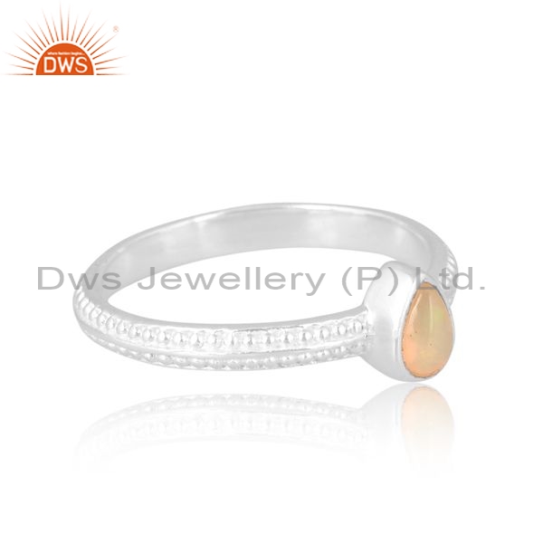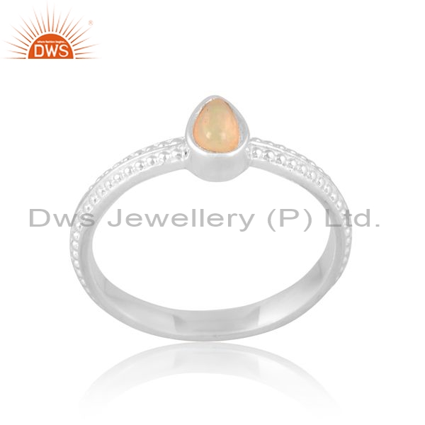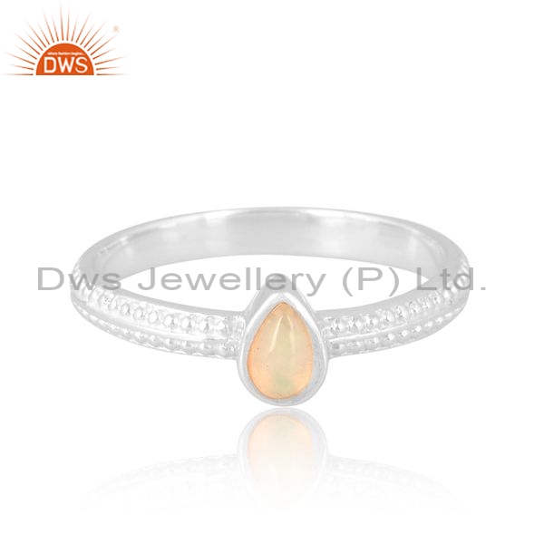 Silver White Ring With Ethiopian Opal Pear Cut Stone