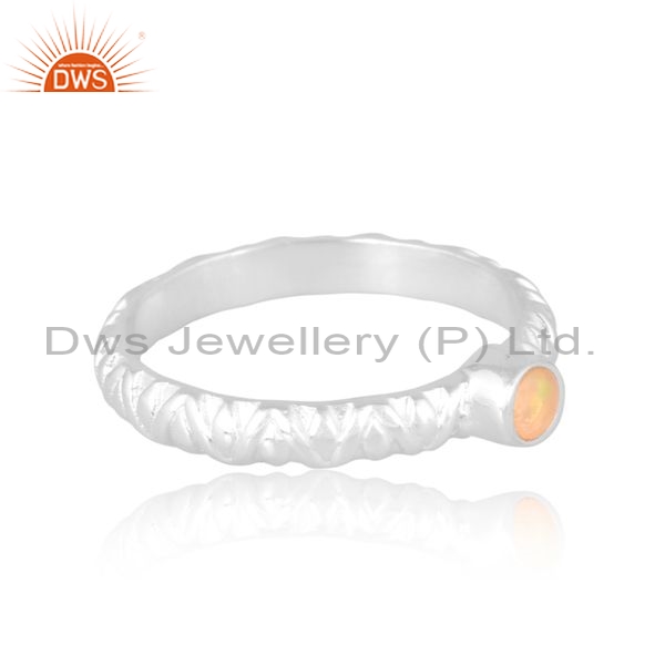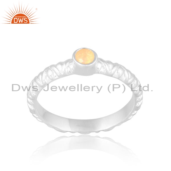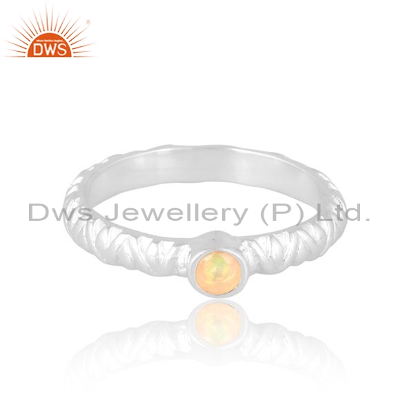 Silver White Ring With Ethiopian Opal Round Cut Gemstone