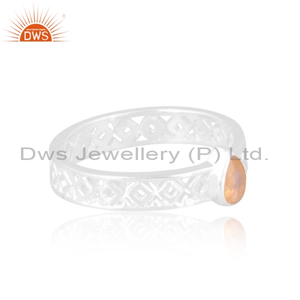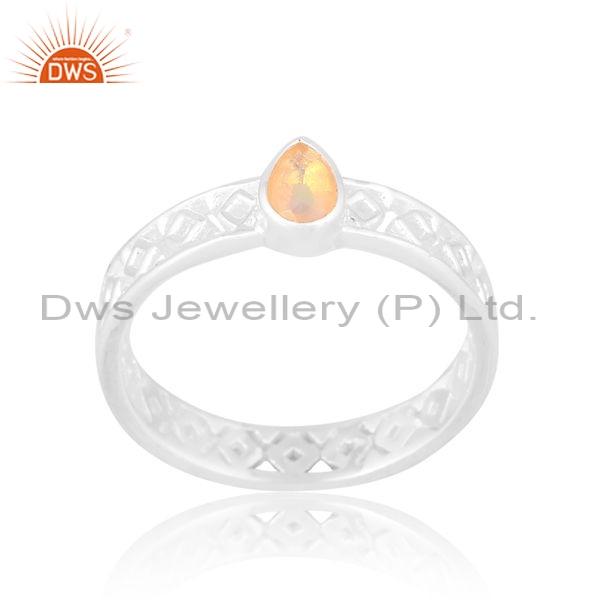Silver White Ring With Ethiopian Opal Stone And Wide Band