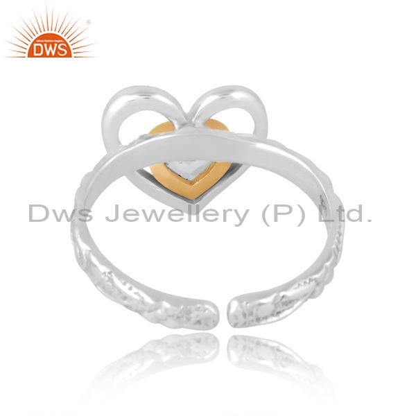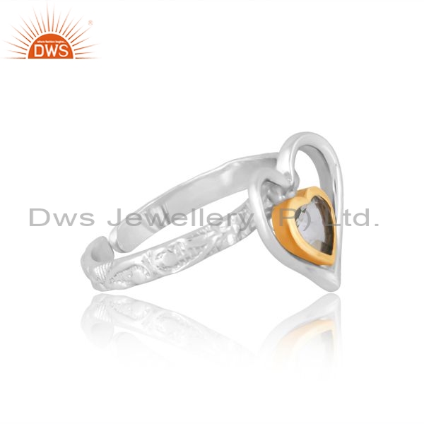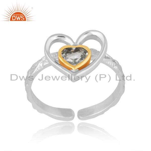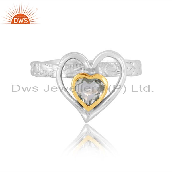 Silver White Ring With Green Amethyst Heart Cut Stone
