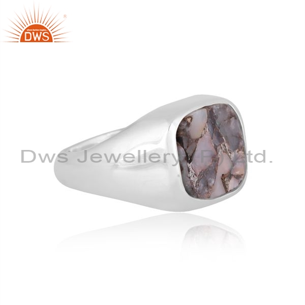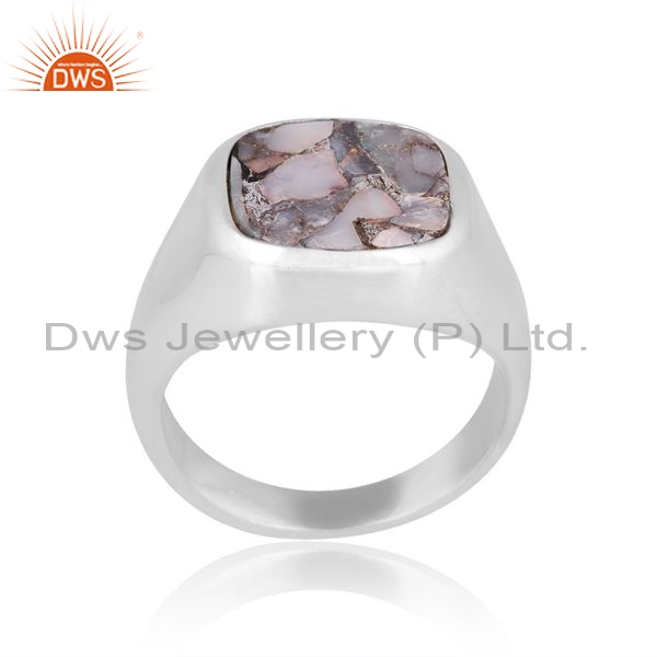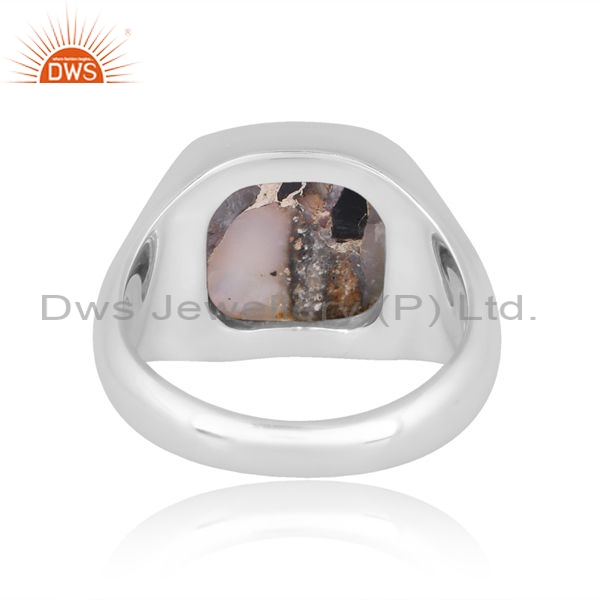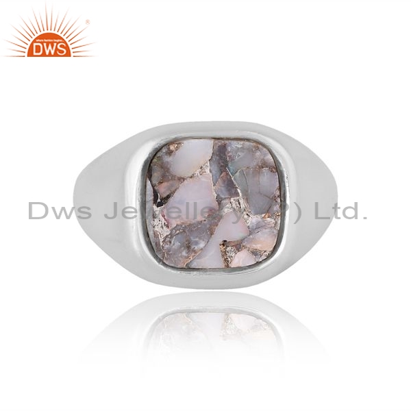 Silver White Ring With Mojave Copper Opal Coin Cushion Stone