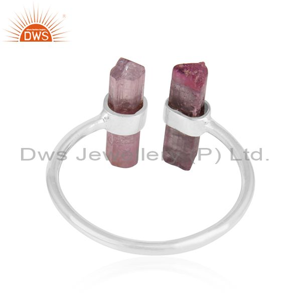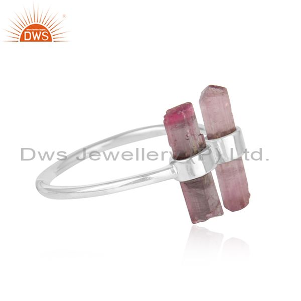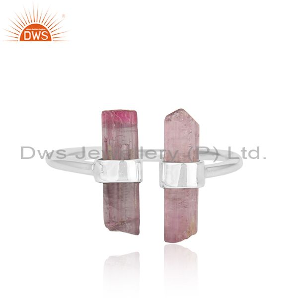Silver White Ring With Multi-Tourmaline Pencil Shape