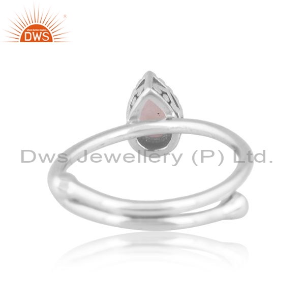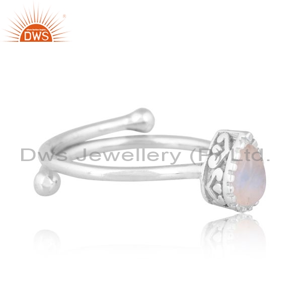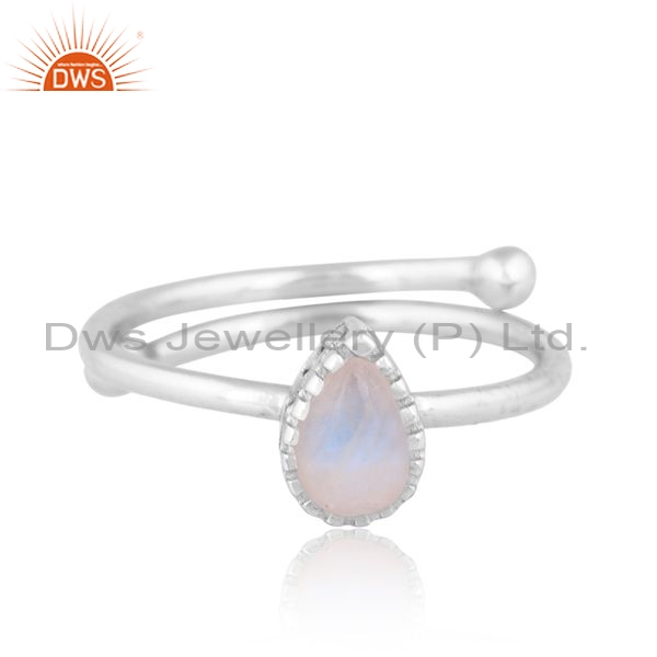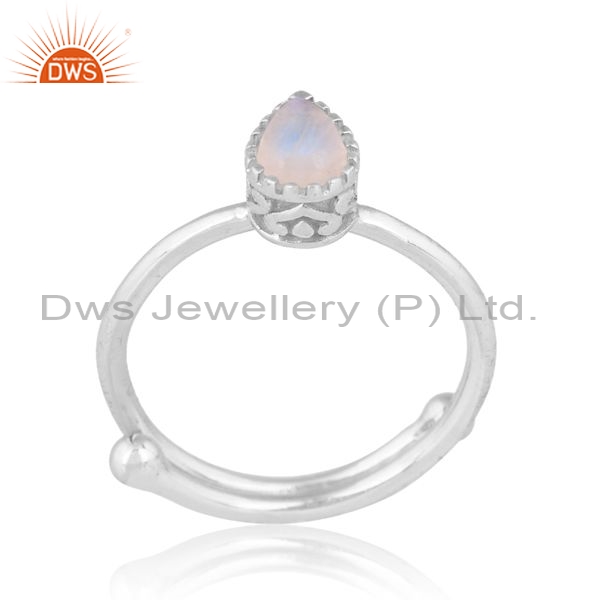 Silver White Ring With Pear Shaped Rainbow Moonstone