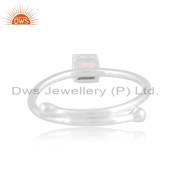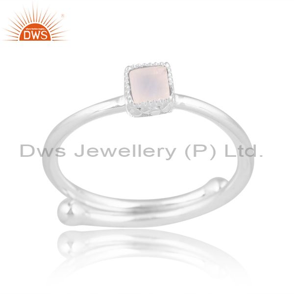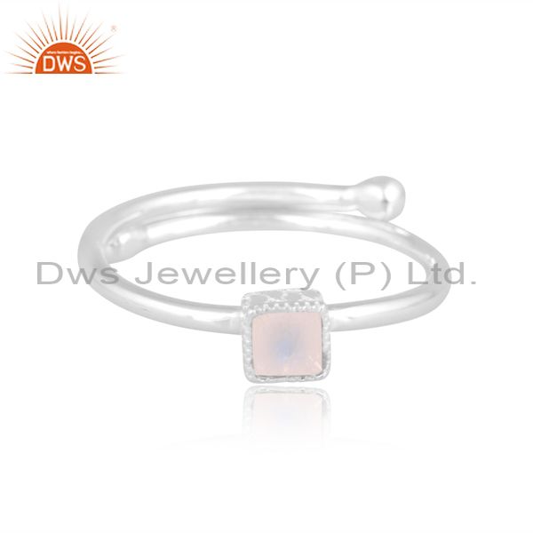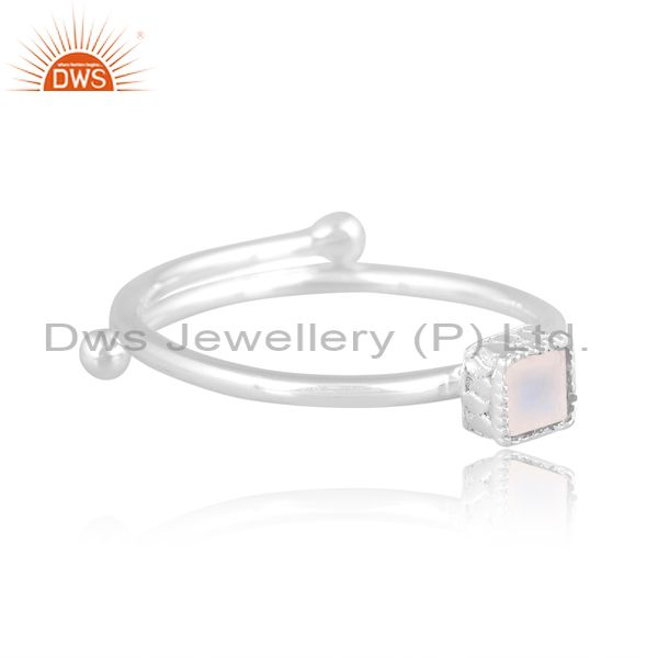 Silver White Ring With Rainbow Moonstone Square Cut Stone