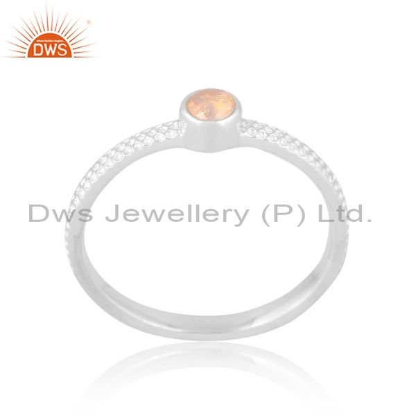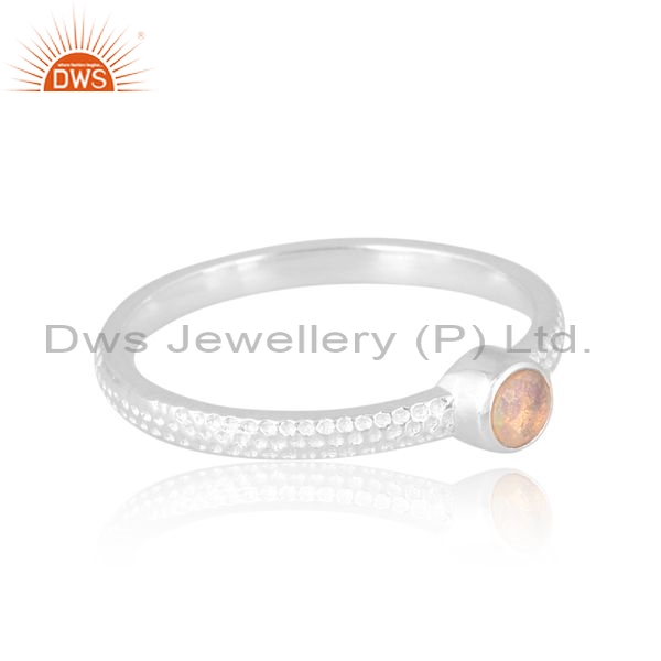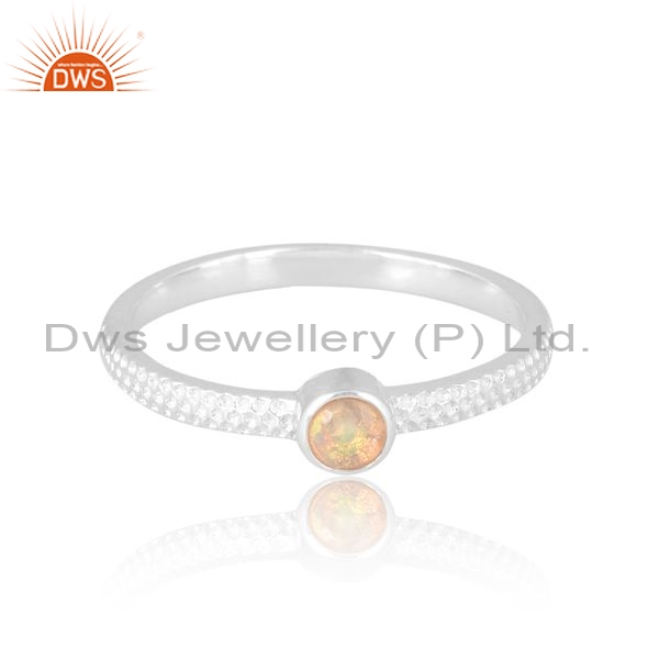 Silver White Ring With Round Cut Ethiopian Opal Gemstone