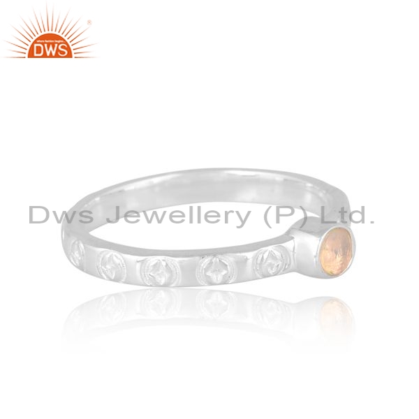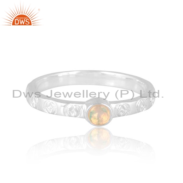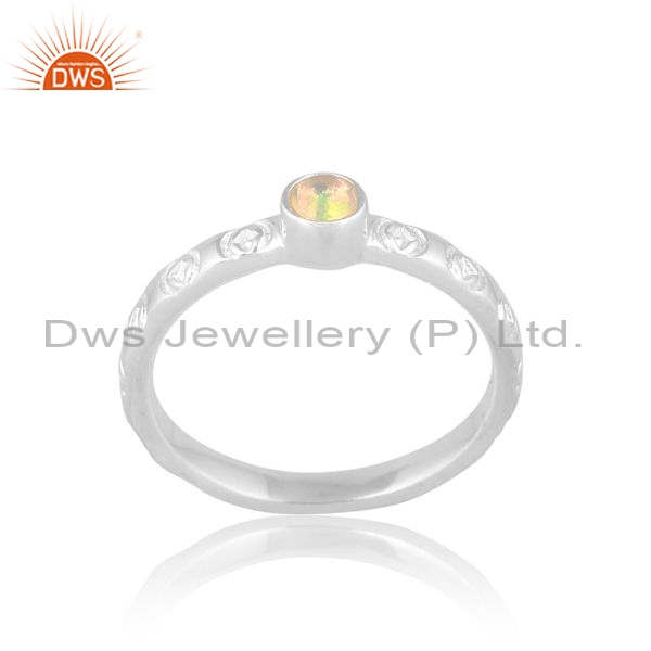 Silver White Ring With Round Cut Ethiopian Opal Stone