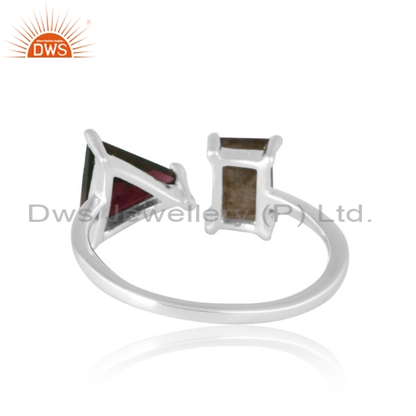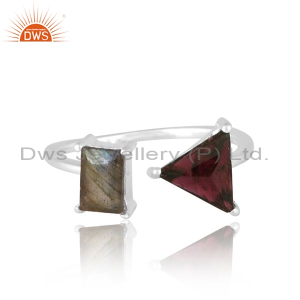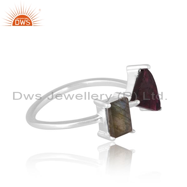 Silver White Ring With Triangle Garnet And Labradorite Stone