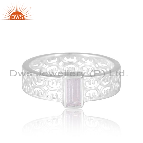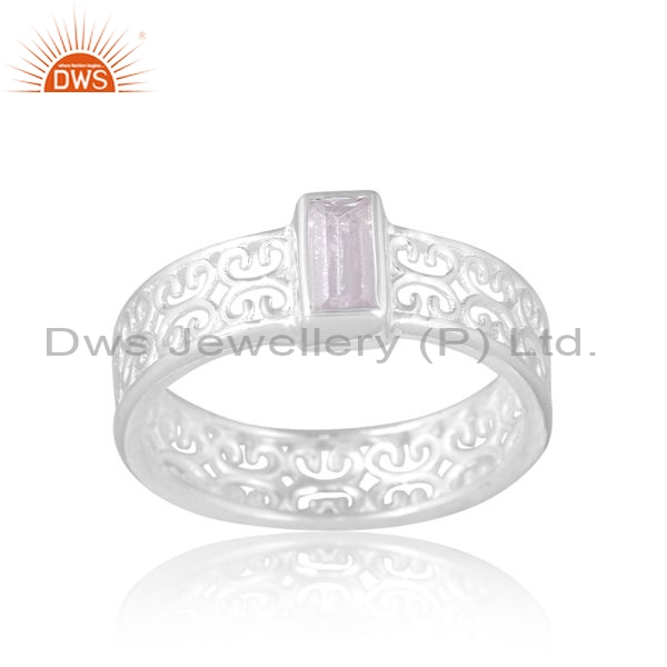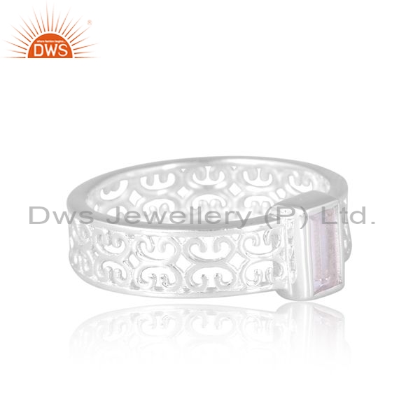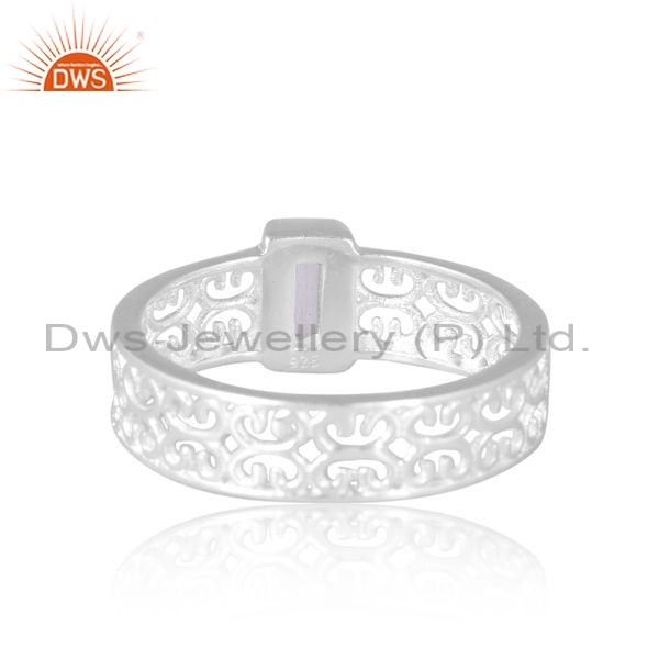 Silver White Ring With Wide Design Band And Cubic Zirconia
