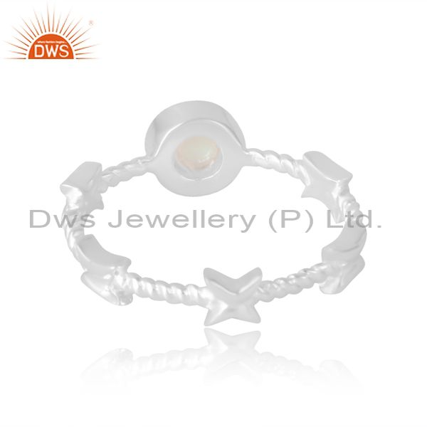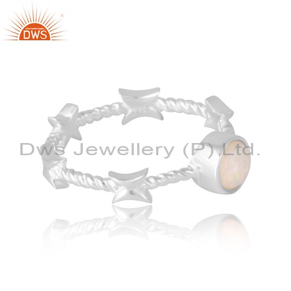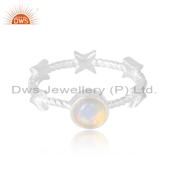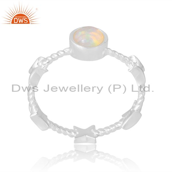 Silver Women Wire Ring With Opal And Star Design Band Unisex