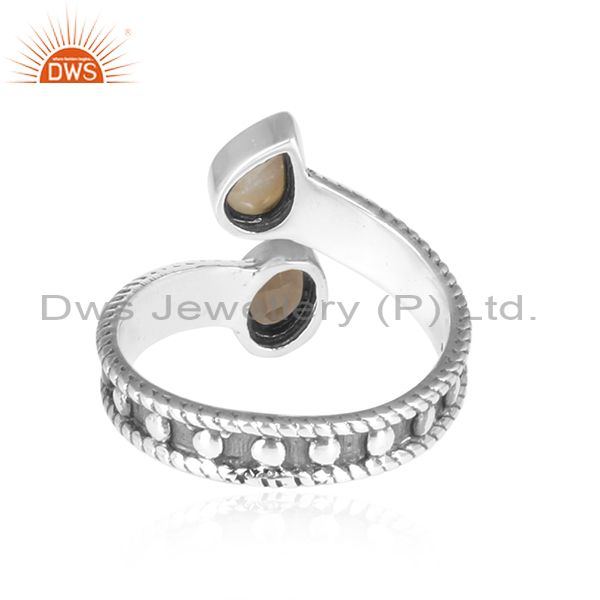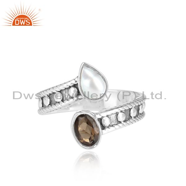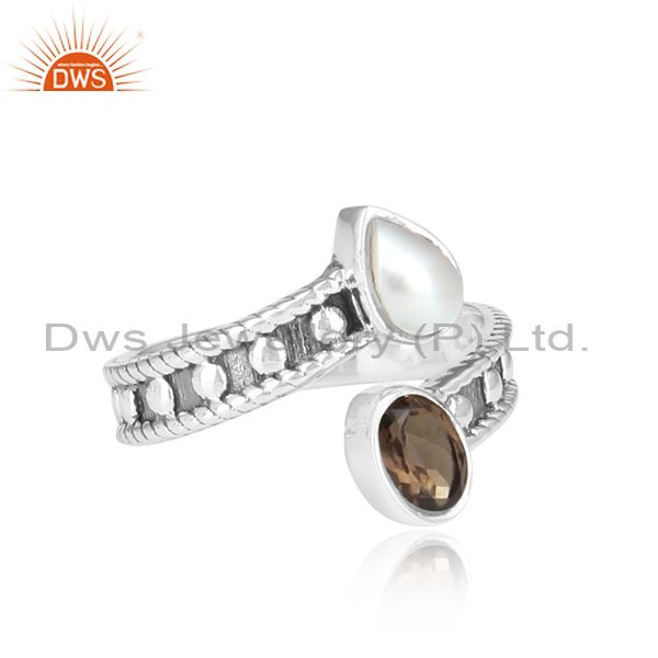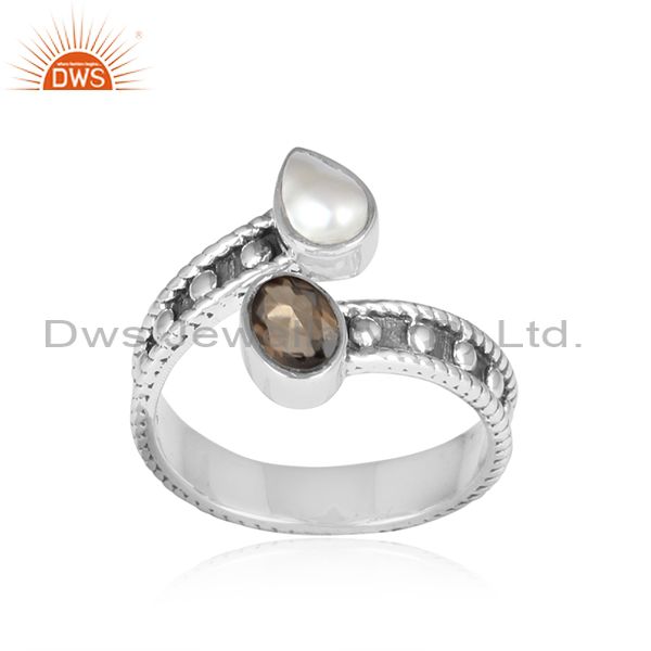 Smoky & Pearl Oxidized Sterling Silver Facing Ring