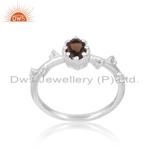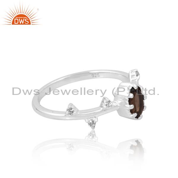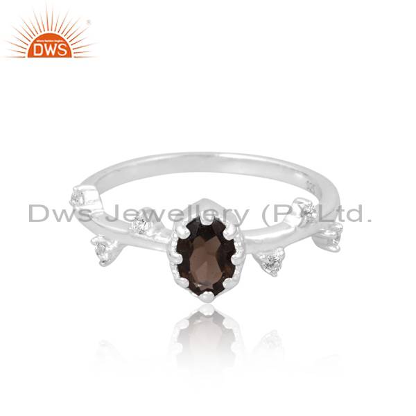 Smoky And Cz Handcrafted Ring: Elegant And Unique Design