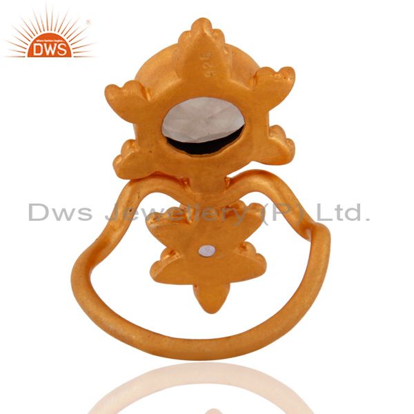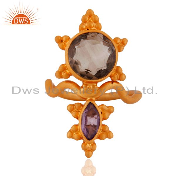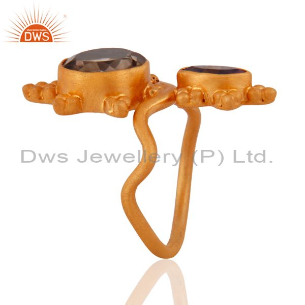 Smoky Quartz And Amethyst Midi Finger Knuckle Ring In 18K Gold On 925 Silver