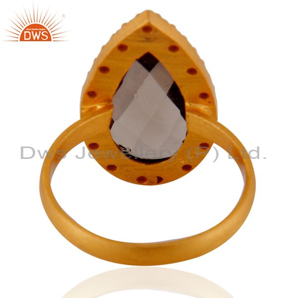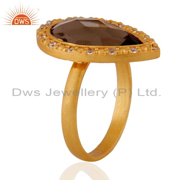 Smoky Quartz And Cubic Zirconia Sterling Silver Ring - Gold Plated