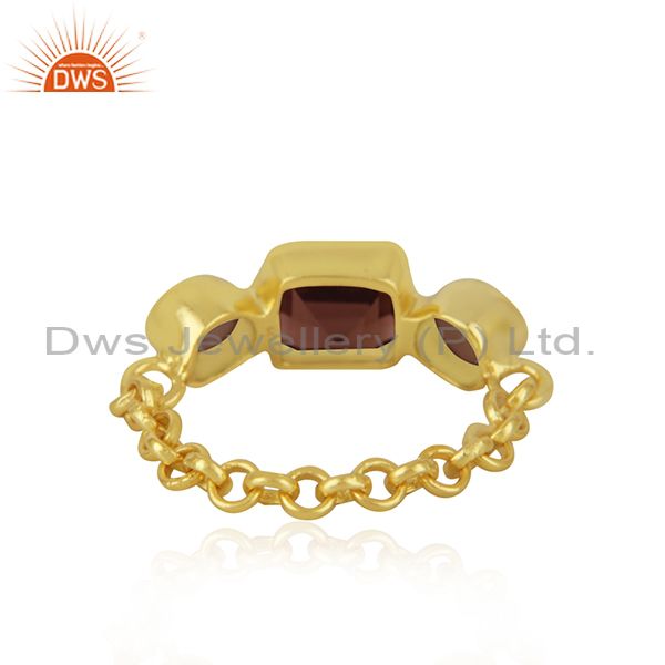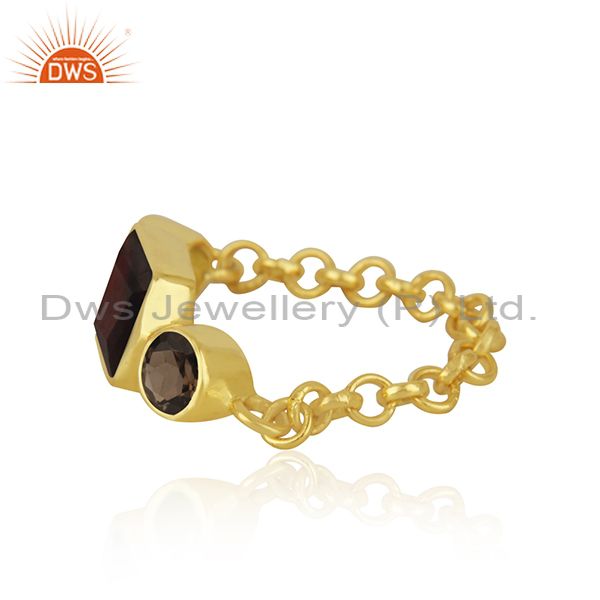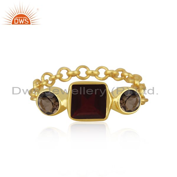 Smoky Quatrz & Garnet Gemstone Ring With Gold Plated Sterling Silver Chain