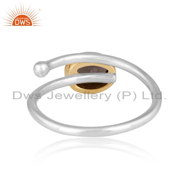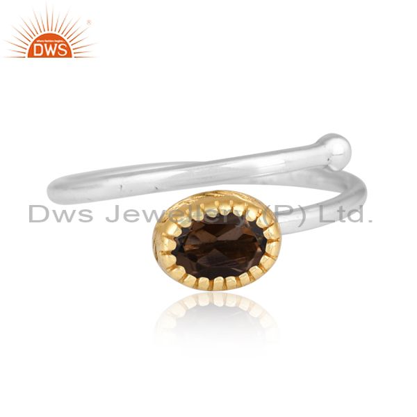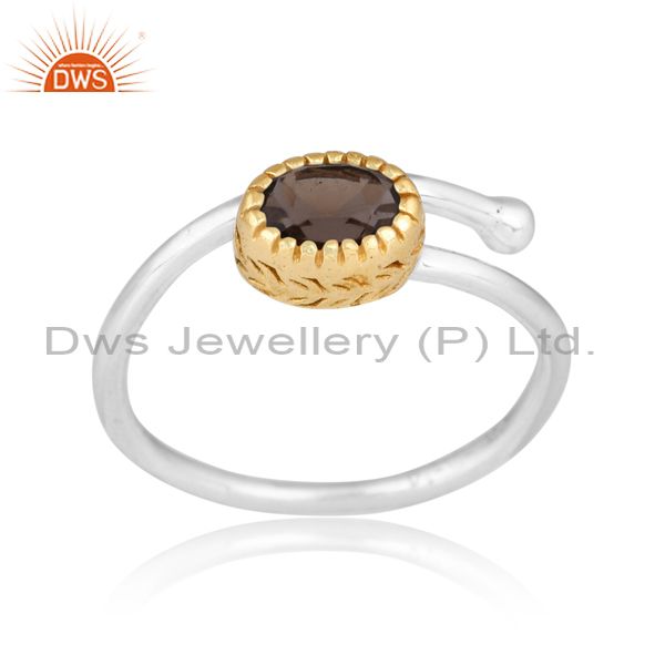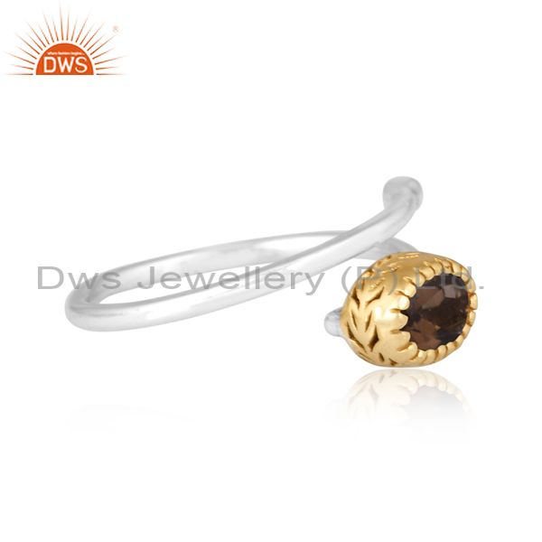 Smoky Set Gold On Fine 925 Silver Handmade Statement Ring