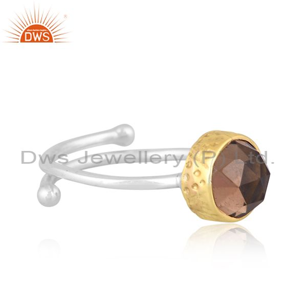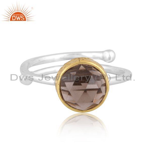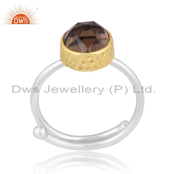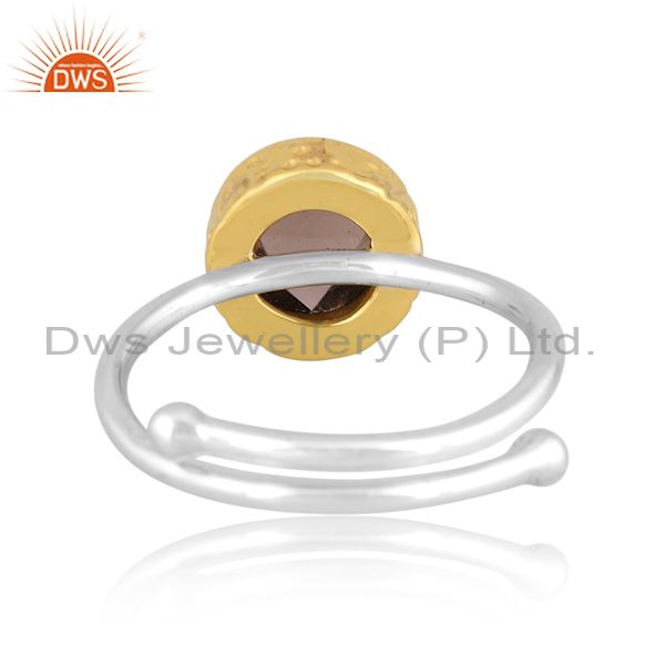 Smoky Set Gold On Fine 925 Sterling Silver Handmade Ring