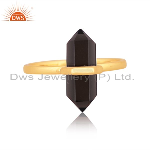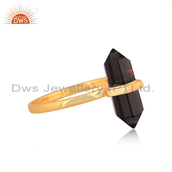 Smoky Set Gold On Sterling Silver Handmade Statement Ring