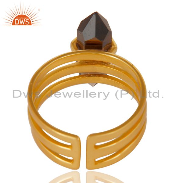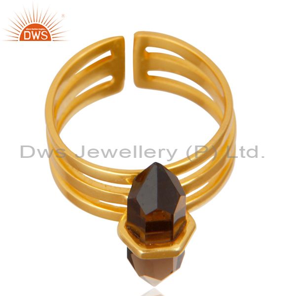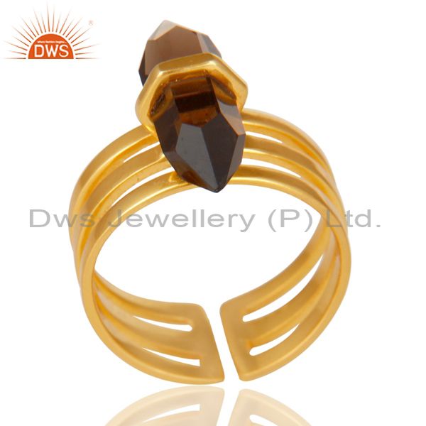 Smoky Topaz Wide Horn Adjustable 14K Gold Plated Sterling Silver Ring