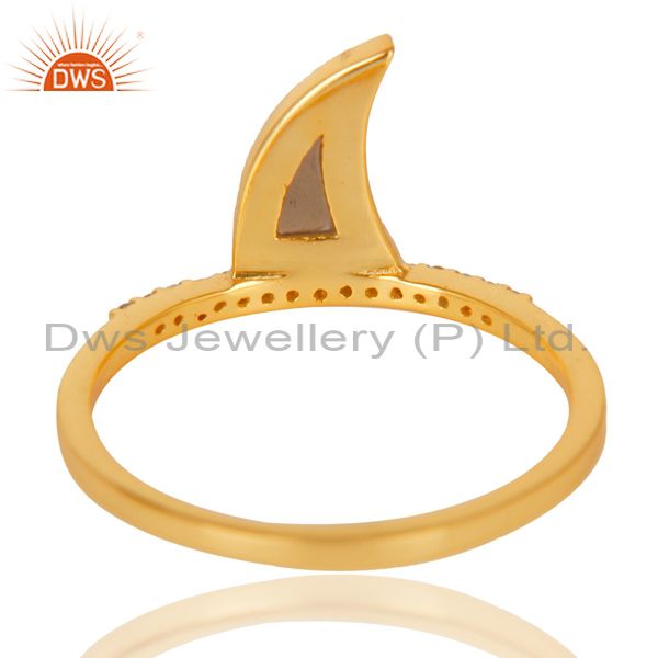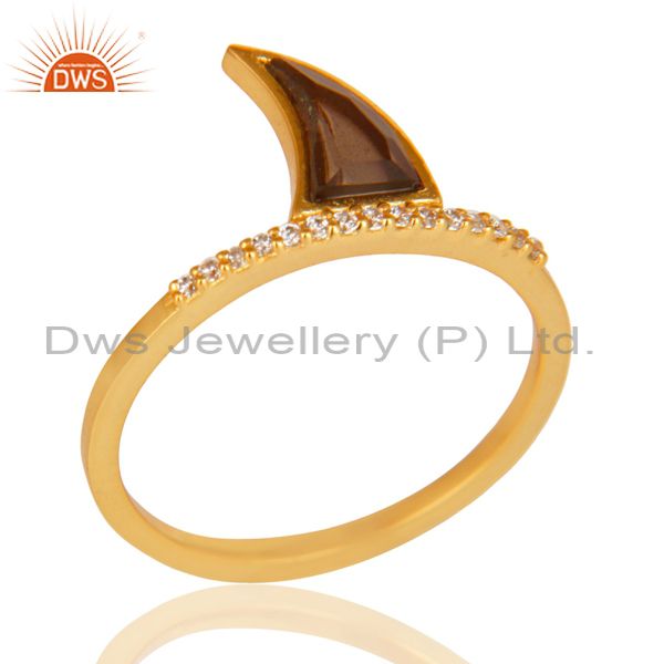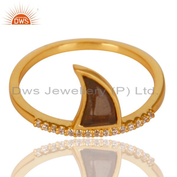 Smoky Topaz Horn Cz Studded Adjustable 14K Gold Plated 92.5 Sterling Silver Ring