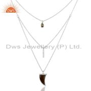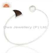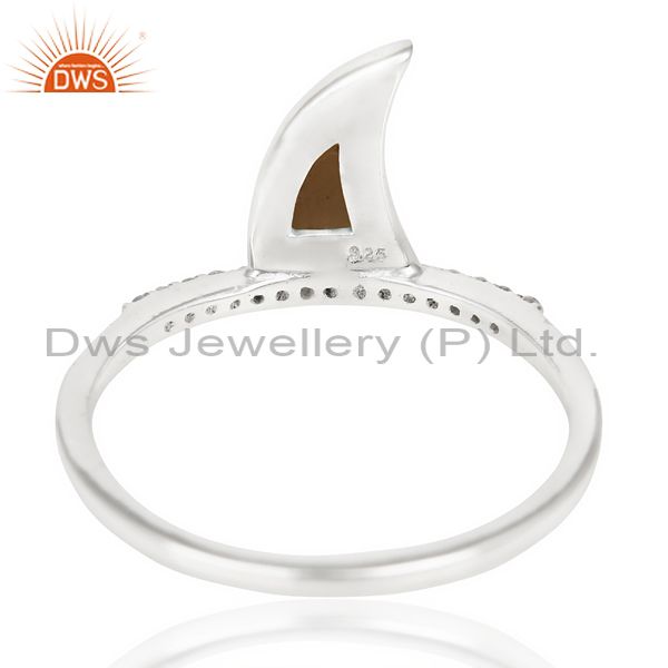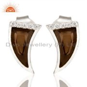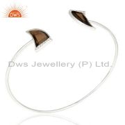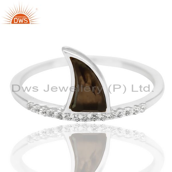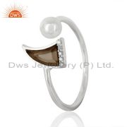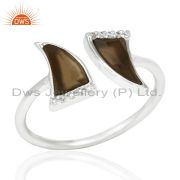 Smoky Topaz Horn Cz Studded Adjustable 92.5 Sterling Silver Ring
