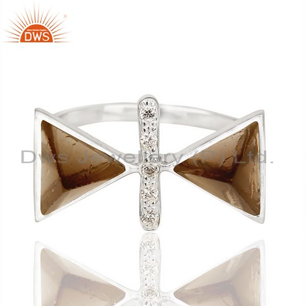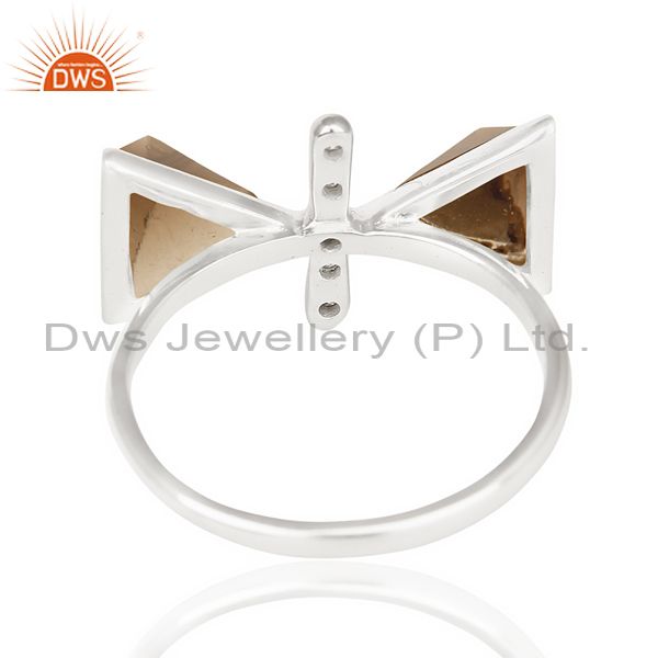 Smoky Topaz Triangle Cut Pyramid Cz Studded Solid 92.5 Sterling Silver Ring