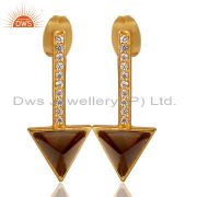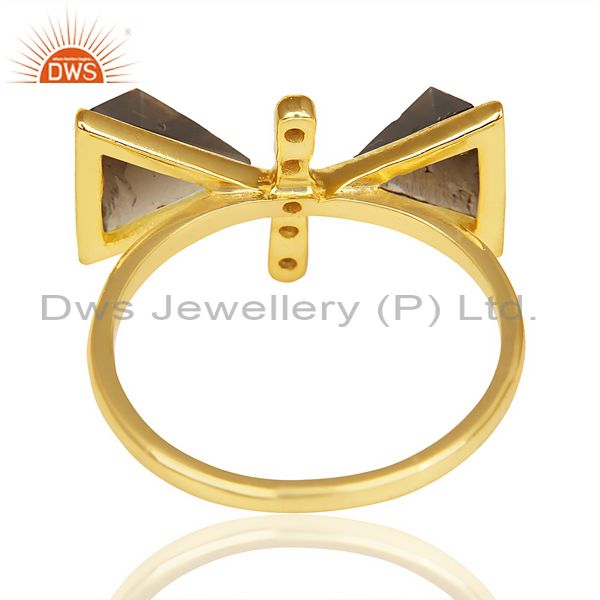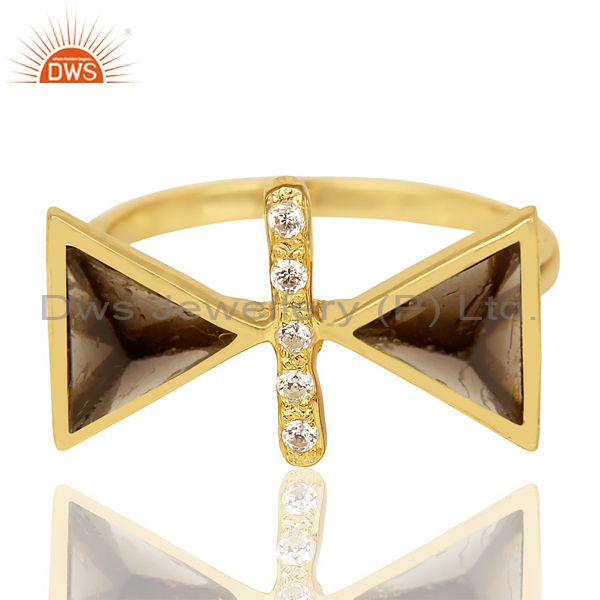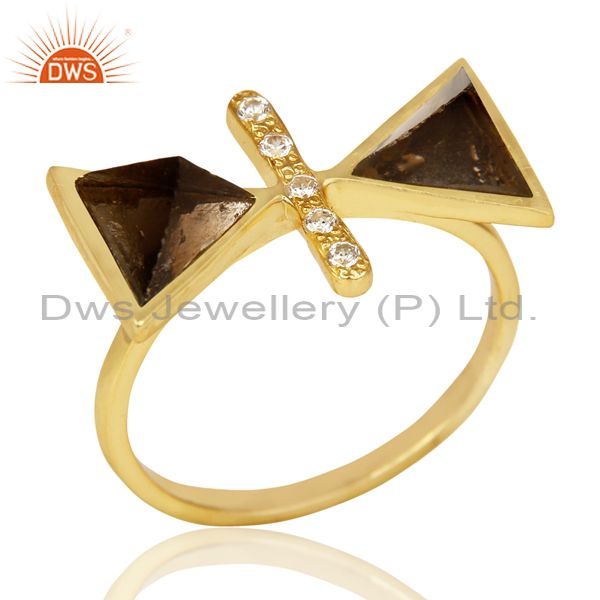 Smoky Topaz Triangle Cut Pyramid Cz Studded 14 K Gold Plated Silver Ring