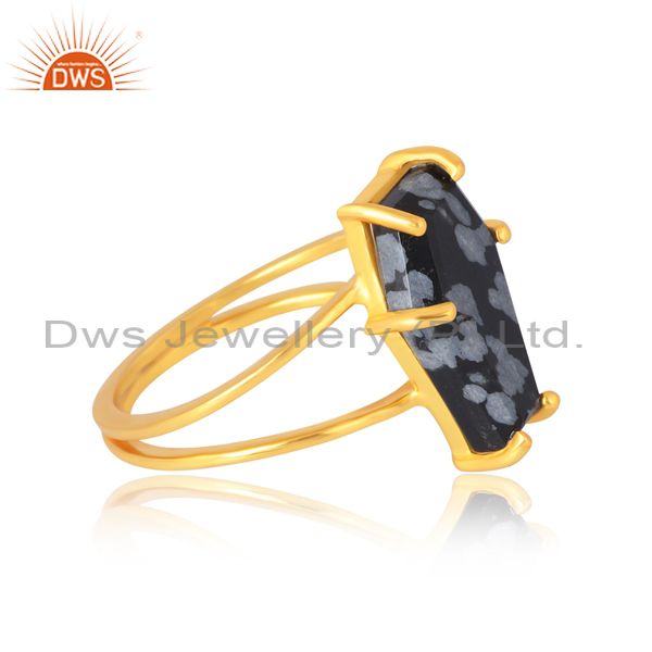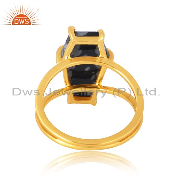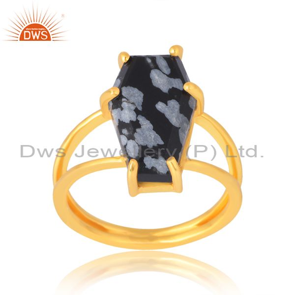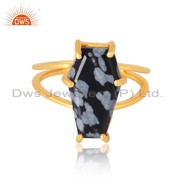 Snowflake Obsidian Coffin Ring: Sterling Silver 18K Gold