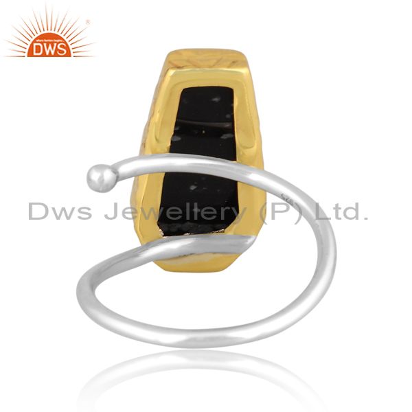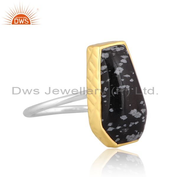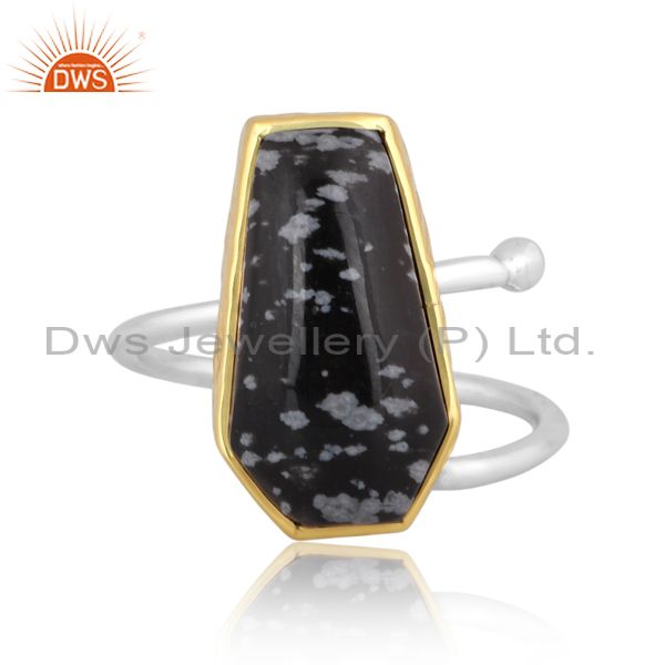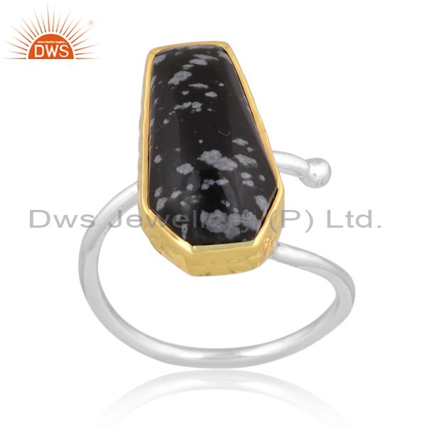 Snowflake Obsidian Set Gold On Fine 925 Silver Abstract Ring