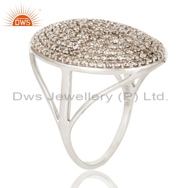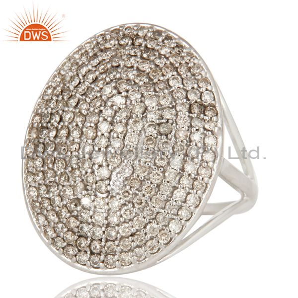 Solid 18K White Gold Pave Set Diamond Cocktail Designer Ring