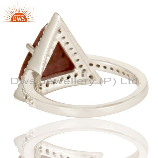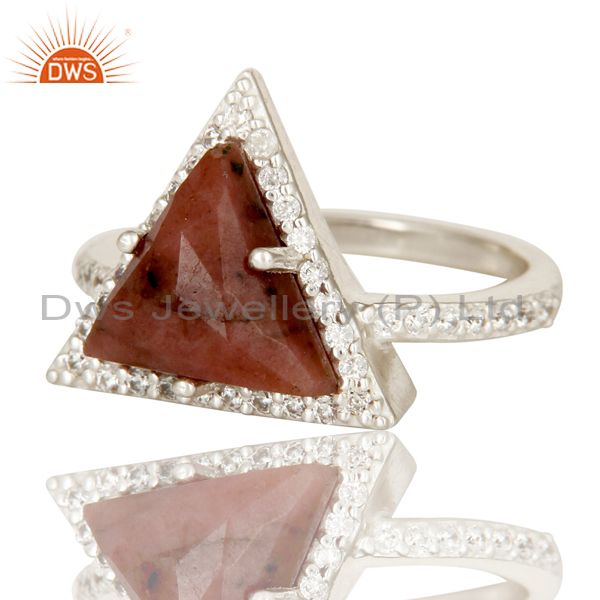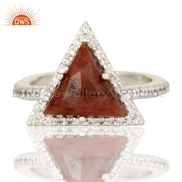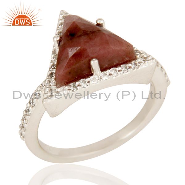 Solid 925 Sterling Silver Checkered Rhodonite & White Zirconia Statement Ring