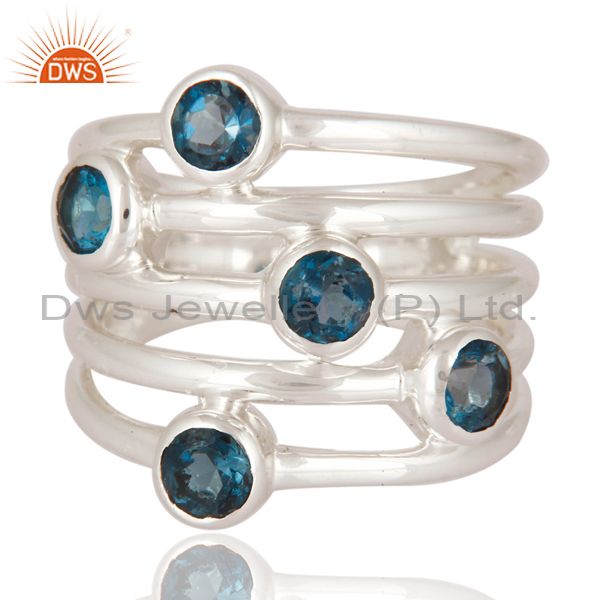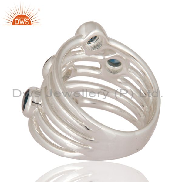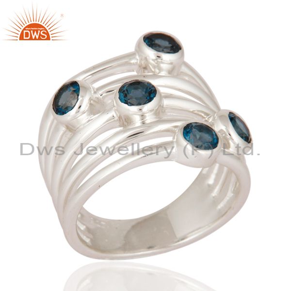Solid 925 Sterling Silver Handmade Fashion Design Blue Topaz Statement Ring