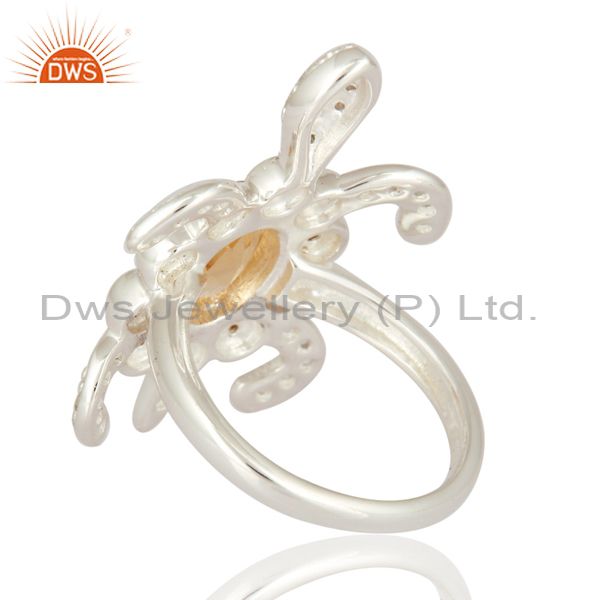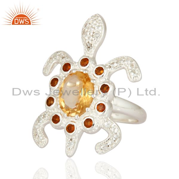 Solid 925 Sterling Silver Turtle Design Ring With Citrine And White Topaz