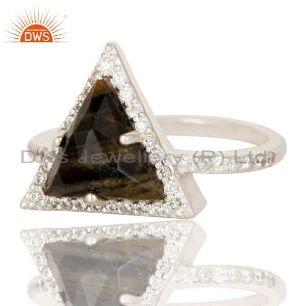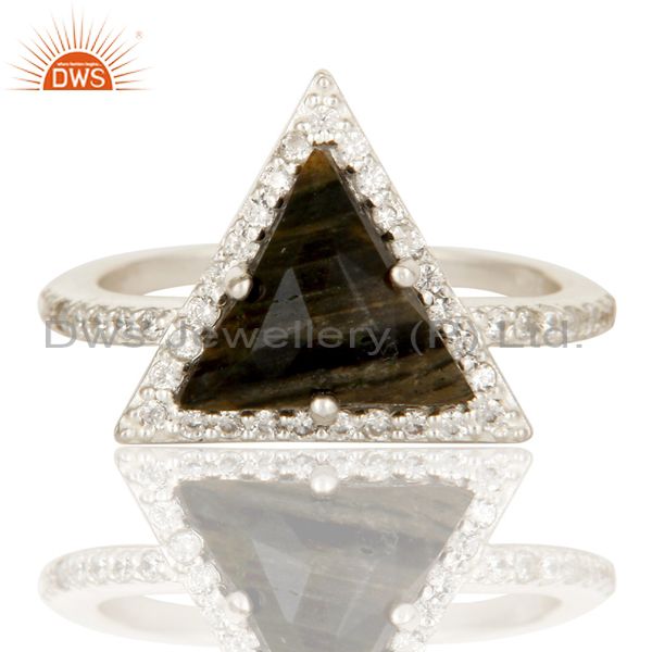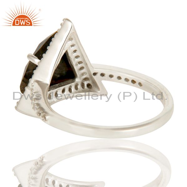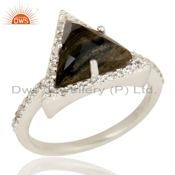 Solid 925 Sterling Silver Zebra Jasper & White Zirconia Gemstone Statement Ring