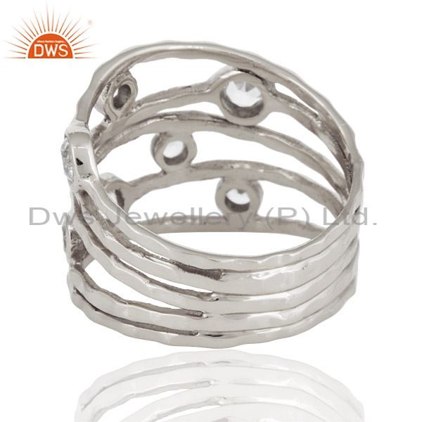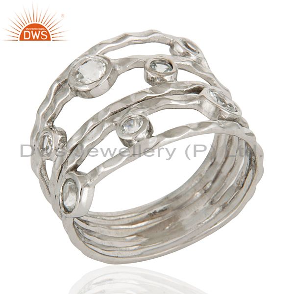 Solid 9K White Gold Natural White Topaz Gemstone Hammered Ring
