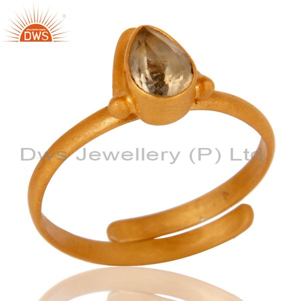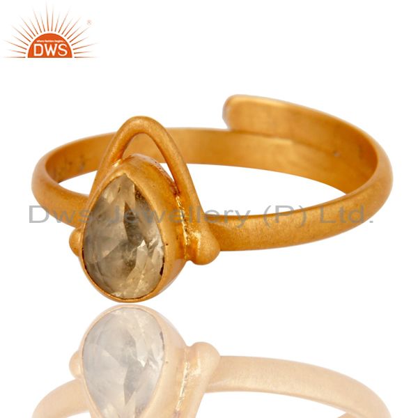 Solid Sterling Silver 18K Yellow Gold Overlay Pear Citrine Adjustable Ring
