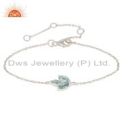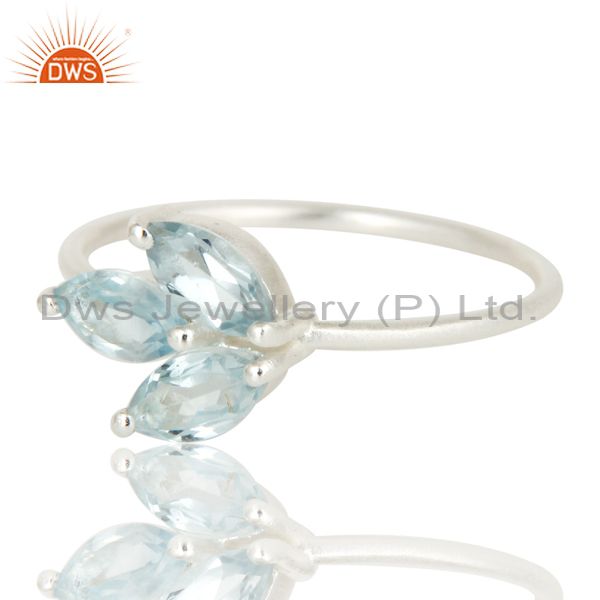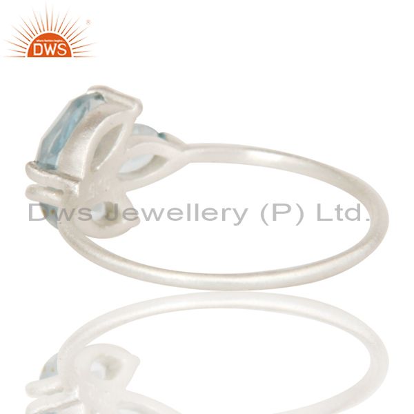 Solid Sterling Silver Blue Topaz Gemstone Prong Set Stacking Ring