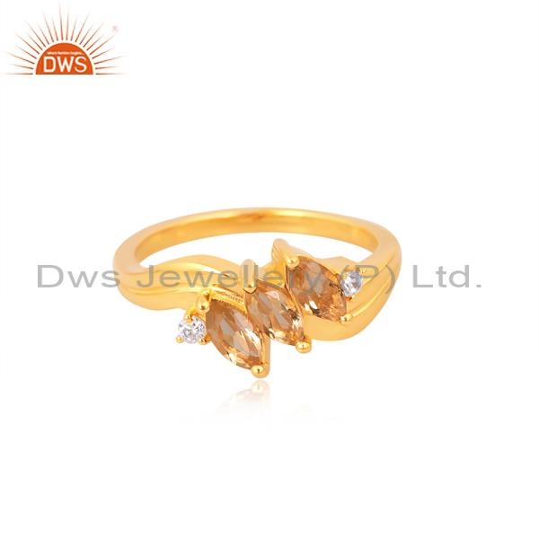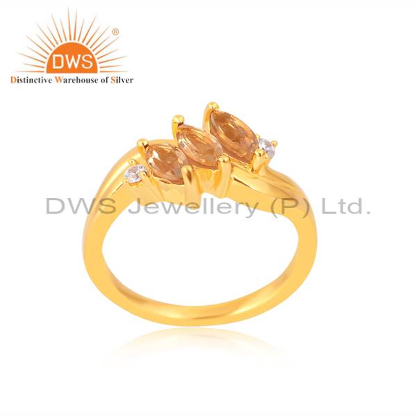 Sparkling Citrine Gold Plated Engagement Ring For Girls