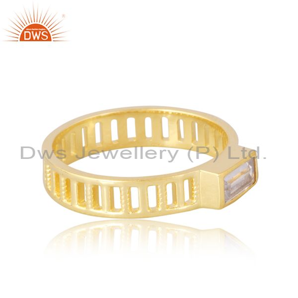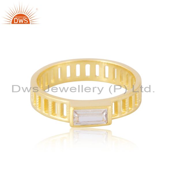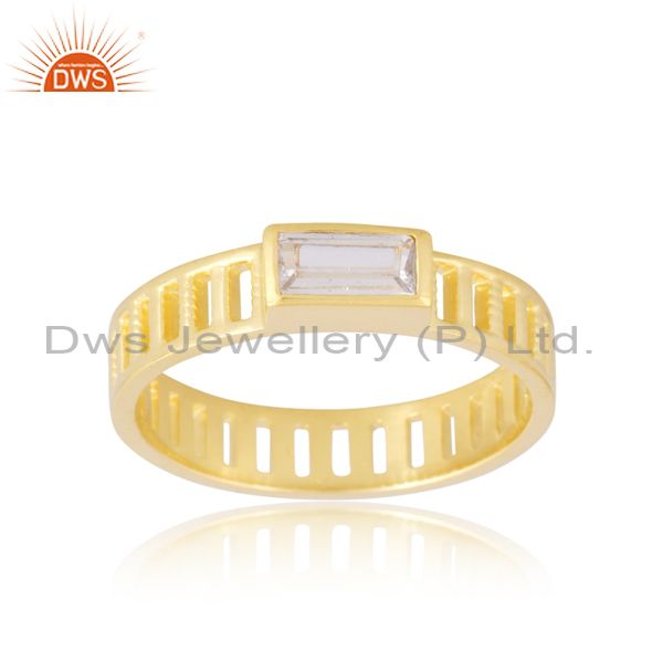 Sparkling Silver & 18K Gold Cubic Zirconia Beguette Ring