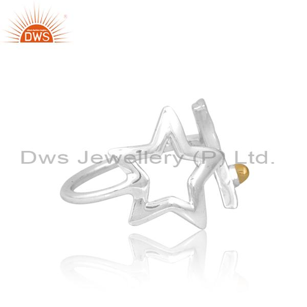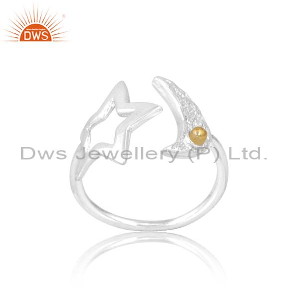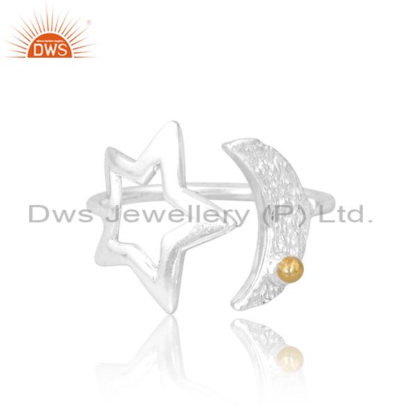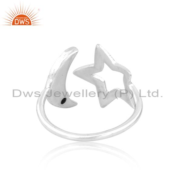 Sparkling Star & Moon Sterling Silver Engagement Ring