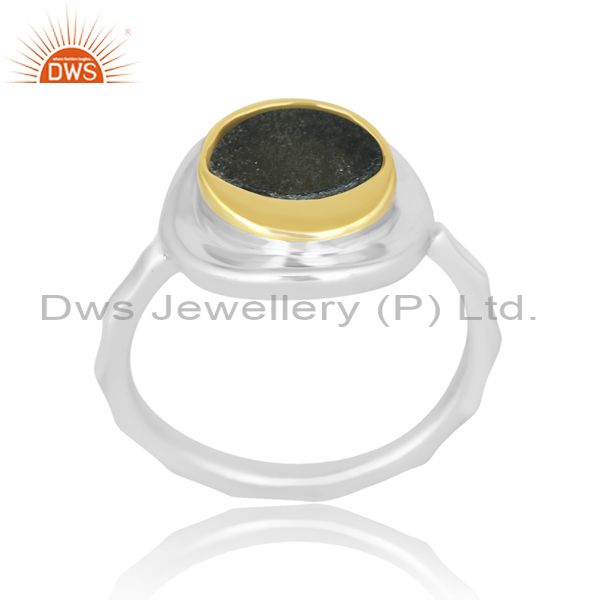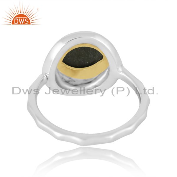 Spiked Silver Band With Chand Cut Obsidian Stone For Women