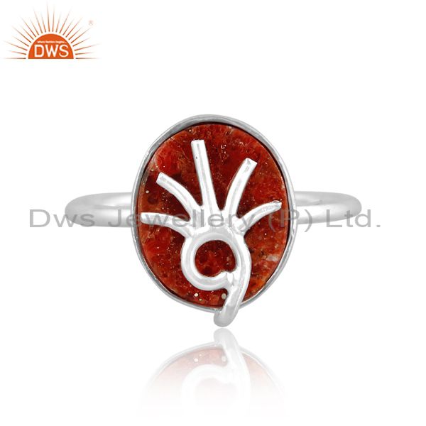 Sponge Coral Coin Set Fine 925 Silver Handmade Abstract Ring
